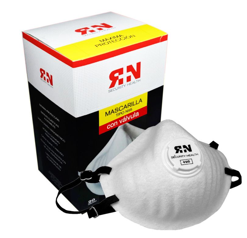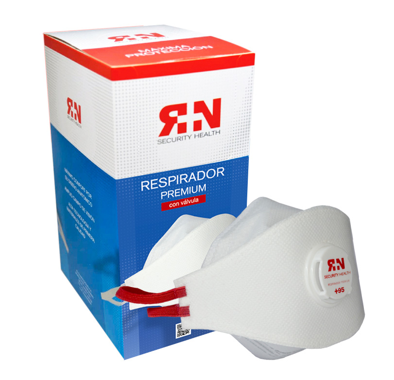 Mascarilla Descartable Barbijo RN Security Health +95 con válvula.